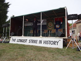 New Paddington RMT (formally National Union of Railwaymen) banner first public outing Burston School Strike Rally (Diss, Norfolk) 1st September 2013 - includes representation of Claudia Jones (Left bottom corner)